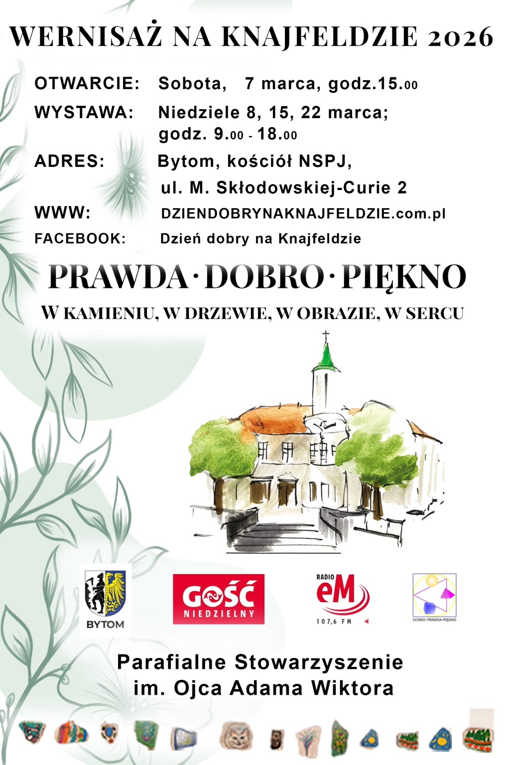 Trzeci „Wernisaż na Knajfeldzie”, na rozpoczęcie wystawy malarstwa i rzeźby, odbędzie się pod przewodnim hasłem: „DOBRO, PRAWDA, PIĘKNO w kamieniu, w drzewie, w obrazie, w sercu”. Oprócz obrazów i rzeźb będzie można zobaczyć „artystyczne kamyczki” w wykonaniu przedszkolaków i dorosłych oraz makietę pomieszczenia z katakumb św. Pryscylli w Rzymie. Zwiedzający będą zaproszeni do tworzenia jednego, wspólnego dzieła sztuki.